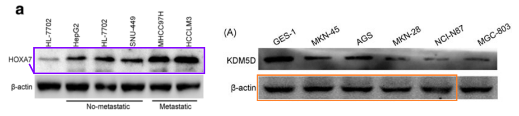 [right] Fig 2A from “KDM5D inhibit epithelial‐mesenchymal transition of gastric cancer through demethylation in the promoter of Cul4A in male” (Shen et al 2019).