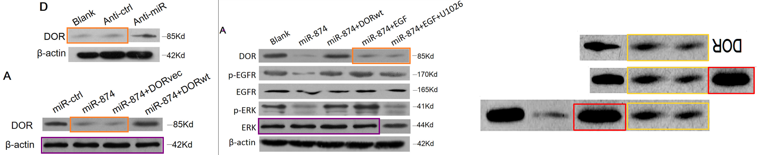 Subsequently we find our man at Affiliated Hospital of Xuzhou Medical University, cutting-&-pasting bands for “microRNA-874 suppresses tumor proliferation and metastasis in hepatocellular carcinoma by targeting the DOR/EGFR/ERK pathway” (Zhang et al 2018).