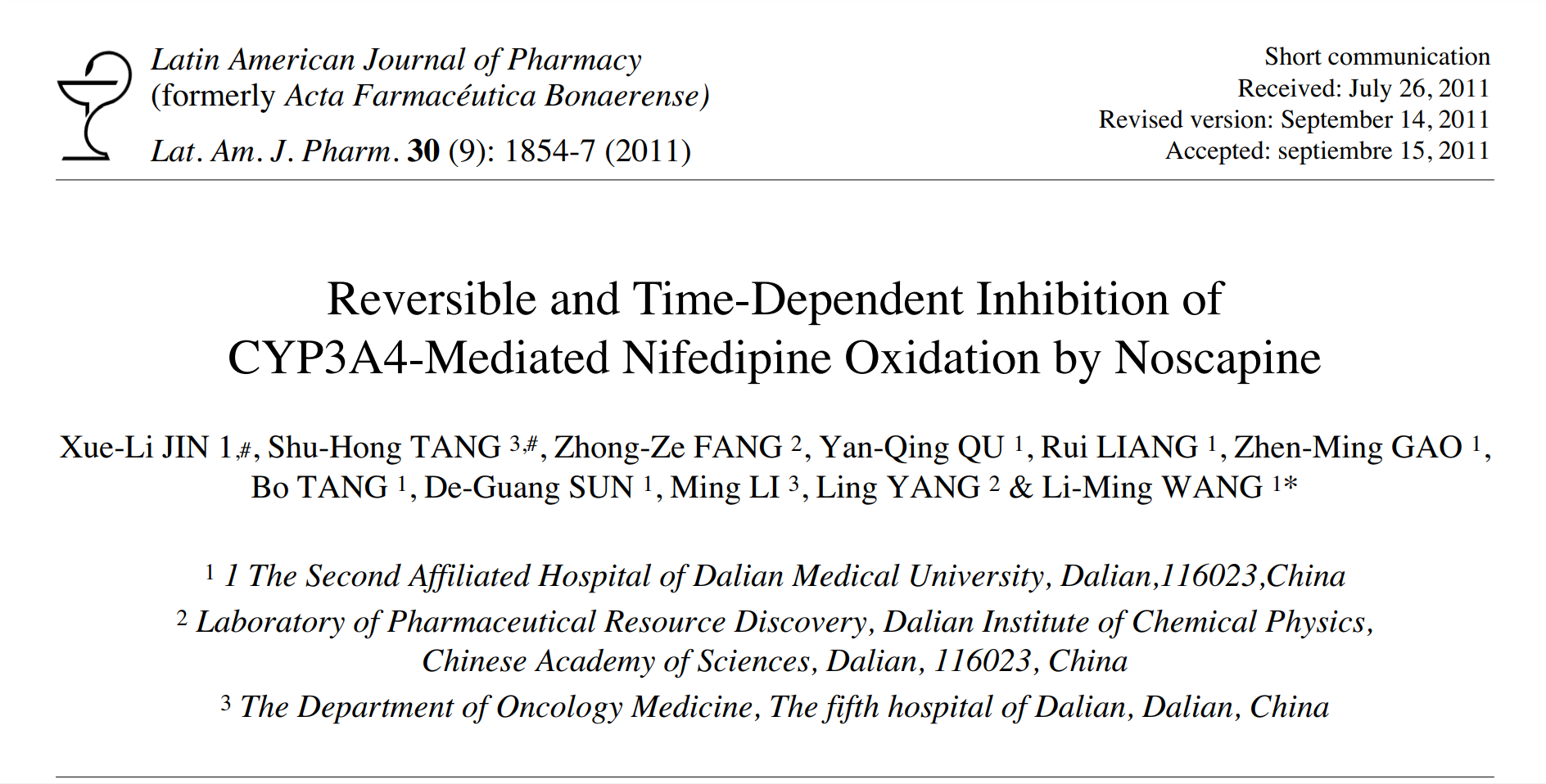 * “Reversible and Time-Dependent Inhibition of CYP3A4-Mediated Nifedipine Oxidation by Noscapine” (Jin et al 2011) was published in the predatory Latin American Journal of Pharmacy and can only be accessed by sending money in unmarked bills, so it has not felt the refining fire of PubPeer critique.