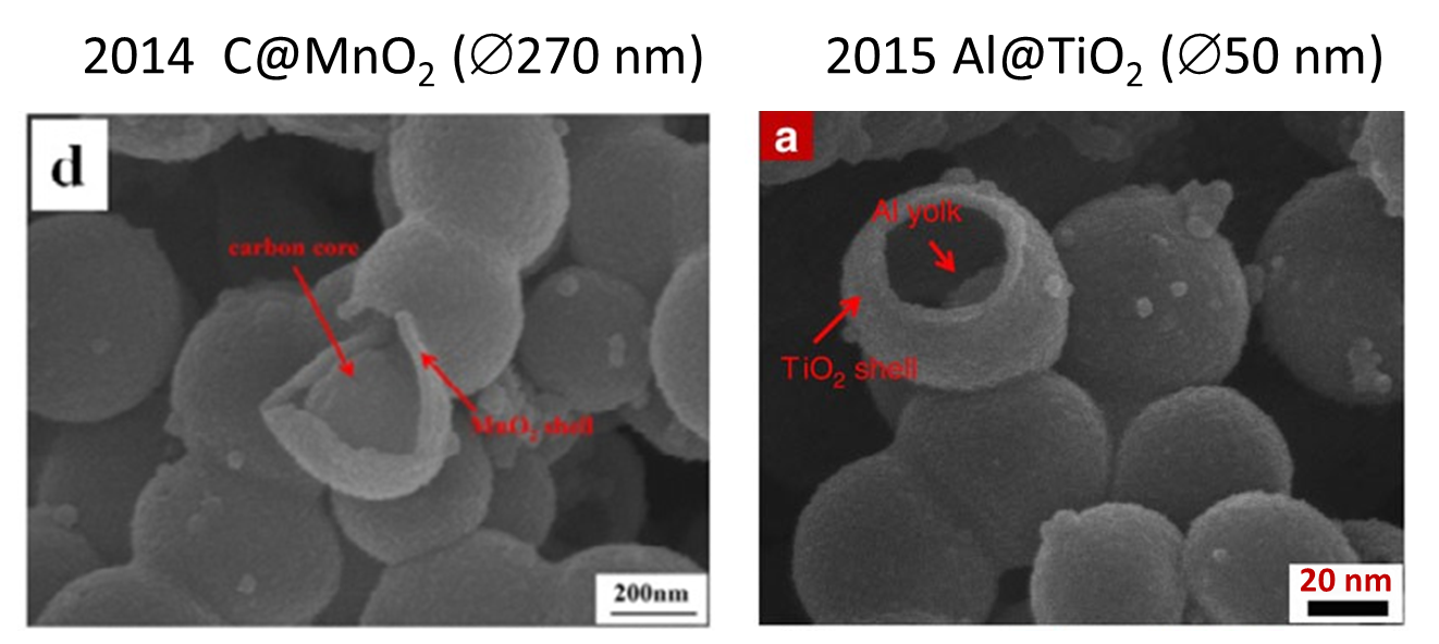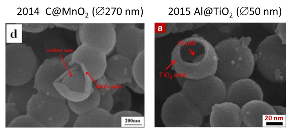 In August 2015, an MIT press release celebrated the papers breakthrough find, headlined ““Yolks” and “shells” improve rechargeable batteries”: