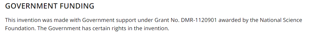 This paper, with its fabricated XRD data, misrepresented and falsified EDX data, and Photoshopped TEM imagery is the basis for MIT patent 20160079592. The patent was filed one month after publication of the paper and contains all of the paper’s figures, including the fabricated ones. Its inventors are grateful for the NSF funding they received: