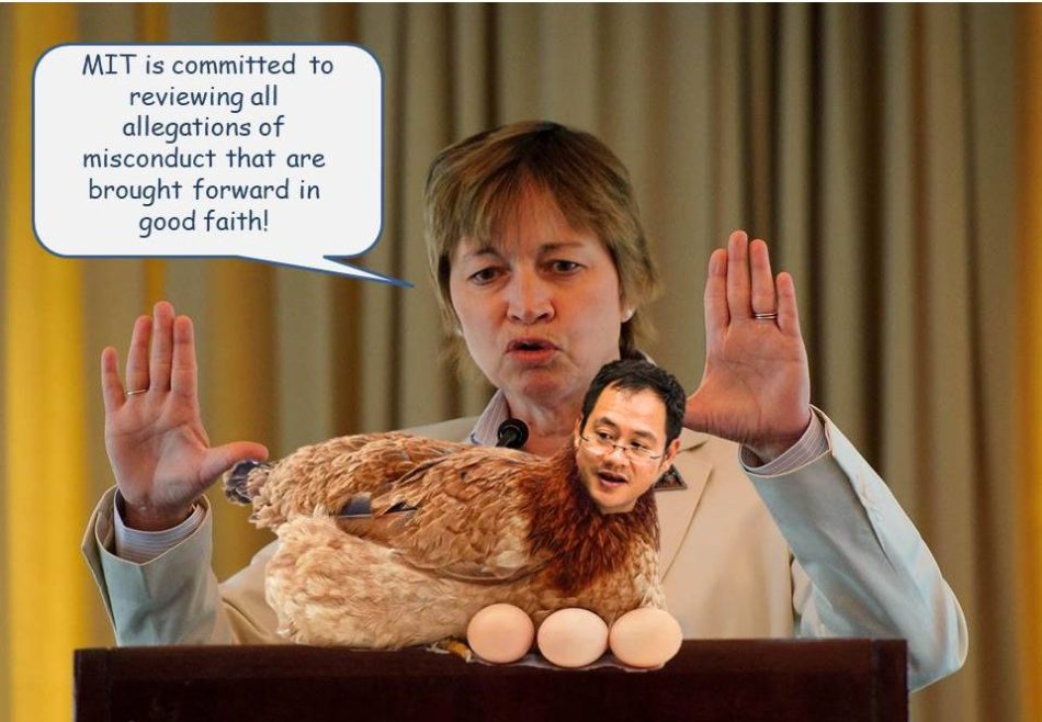 “Based on the faculty member’s Inquiry of the complaint and referenced publications, MIT has determined that an Investigation into the allegations is not warranted because the available evidence is not sufficient to support the allegations that research misconduct may have occurred as alleged. Accordingly, MIT’s review of these allegations is now closed and this decision is final.”