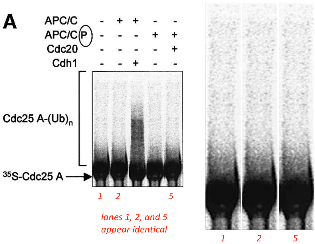 Below to the left a lovely vintage microscopy patchwork by Pagano, Draetta and Massimo Loda. To the right a triple lane duplication in a 2002 EMBO Journal paper by Draetta and Pagano, and co-signed also by the 2004 Nobel Prize for Chemistry winner Avram Hershko: