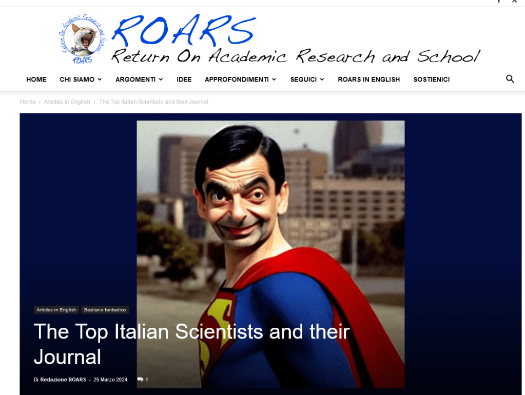 The occasion for this article by Aneurus is the recent opening of a new Open Access yet exclusive to enter journal, suitably called Top Italian Scientists Journal. This bizarre publication was originally ridiculed in March 2024 by ROARS, an independent association of Italian scientists: