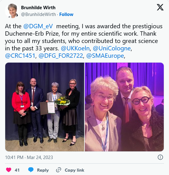 In 2018, Wirth was celebrated for having discovered a cure for spinal dystrophy (translated):