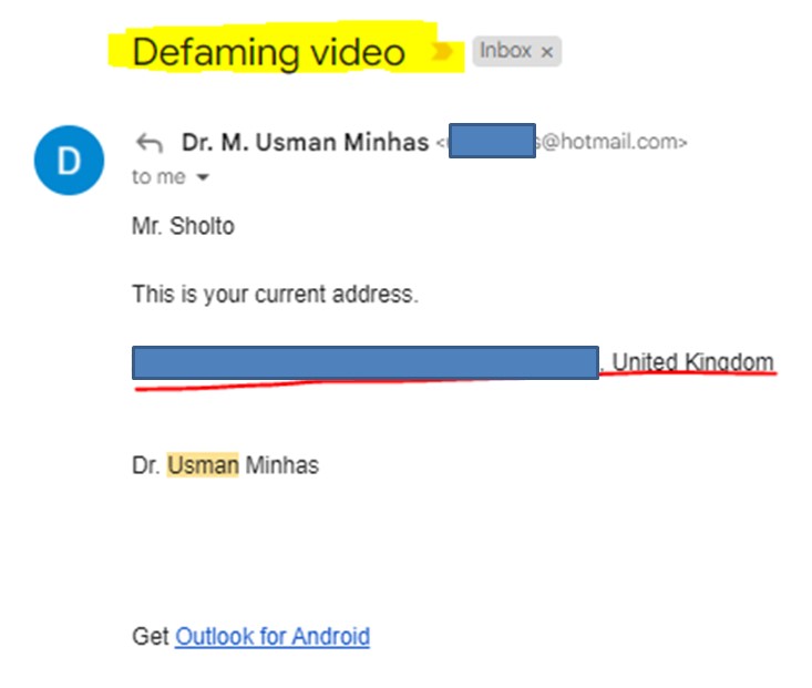 Minhas, who is professor at the University of Sargodha in Pakistan, reacted to the YouTube video like a proper scholar. By threatening Sholto: