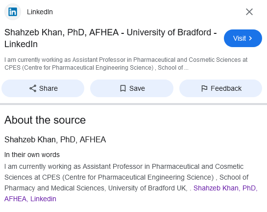 In December 2023, Harris Beider, Pro Vice-Chancellor for Research, Innovation & Engagement of the University of Bradford, informed Sholto that “a thorough investigation is being undertaken in line with our University policies and procedures; this investigation was being led by Dr Claire Trinder, our Head of Research Operations, as an independent and impartial party.” Sholto was also infomed that “as an external party it is not appropriate for us to have an ongoing dialogue with you about the outcome of a confidential employee process.” Yet Trinder told him, also in December 2023: “Our investigation is reaching its conclusion and is continuing to follow our internal policies and procedures.” Indeed, something happened to Shahzeb Khan’s institutional profile: the December 2024 version had his email, phone and department affiliation listed, all that information was gone from the current version. Also Khan’s LinkedIn profile was recently deleted.