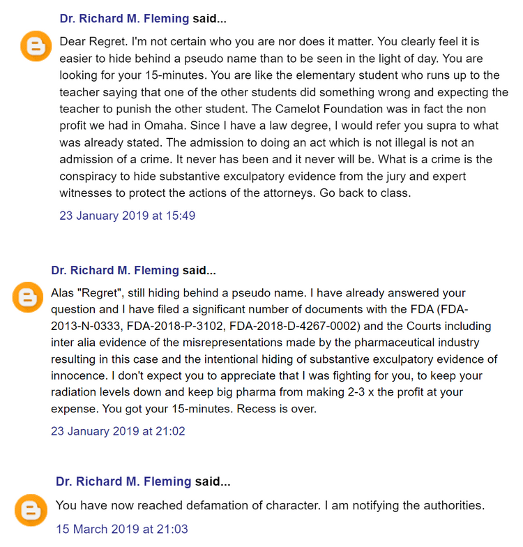 Unfortunately, he later deleted his comments on George’s site… unfortunately because they were amongst the funniest outbursts he’s published. Kindly, someone archived George’s site on the Internet Archive before Dr. who? deleted his comments so we can still look back with delight on the now-5 year old bluster from this literal fraudster.