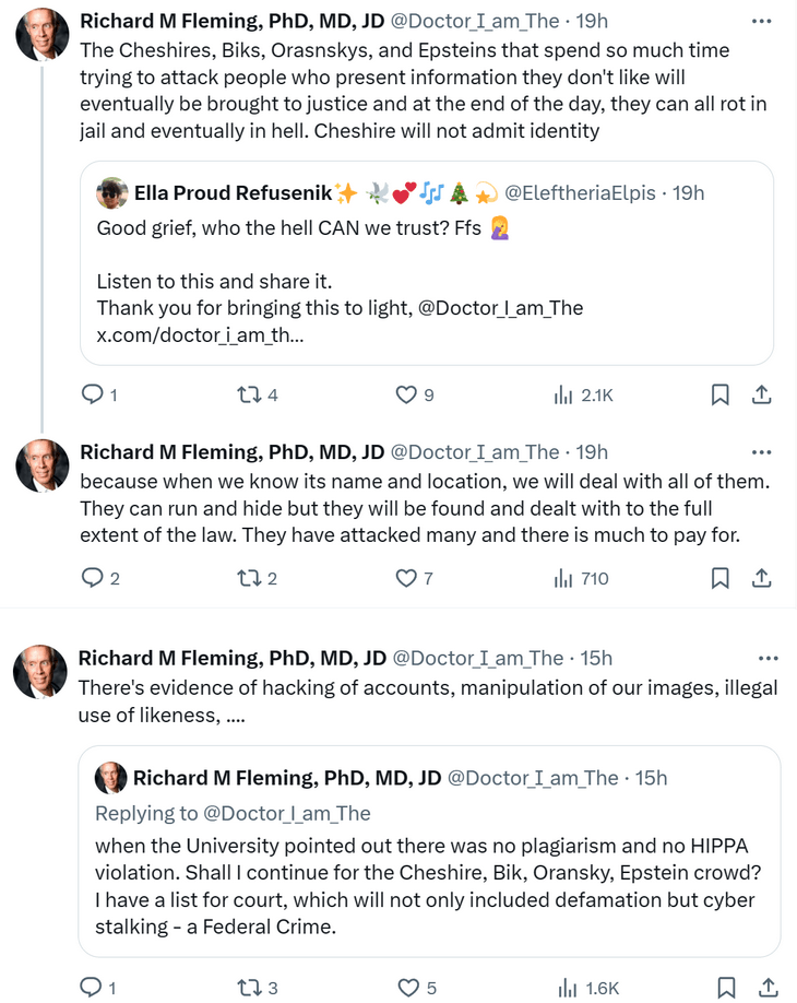 Cheshire is not a scientist. But neither is his nemesis Richard Fleming, also known as “Dr who?”. There is no insane conspiracy theory that covidiot and convicted felon hasn’t embraced, and he now wrote a second unhinged book. Which Cheshire read and now wrote a brief review about.