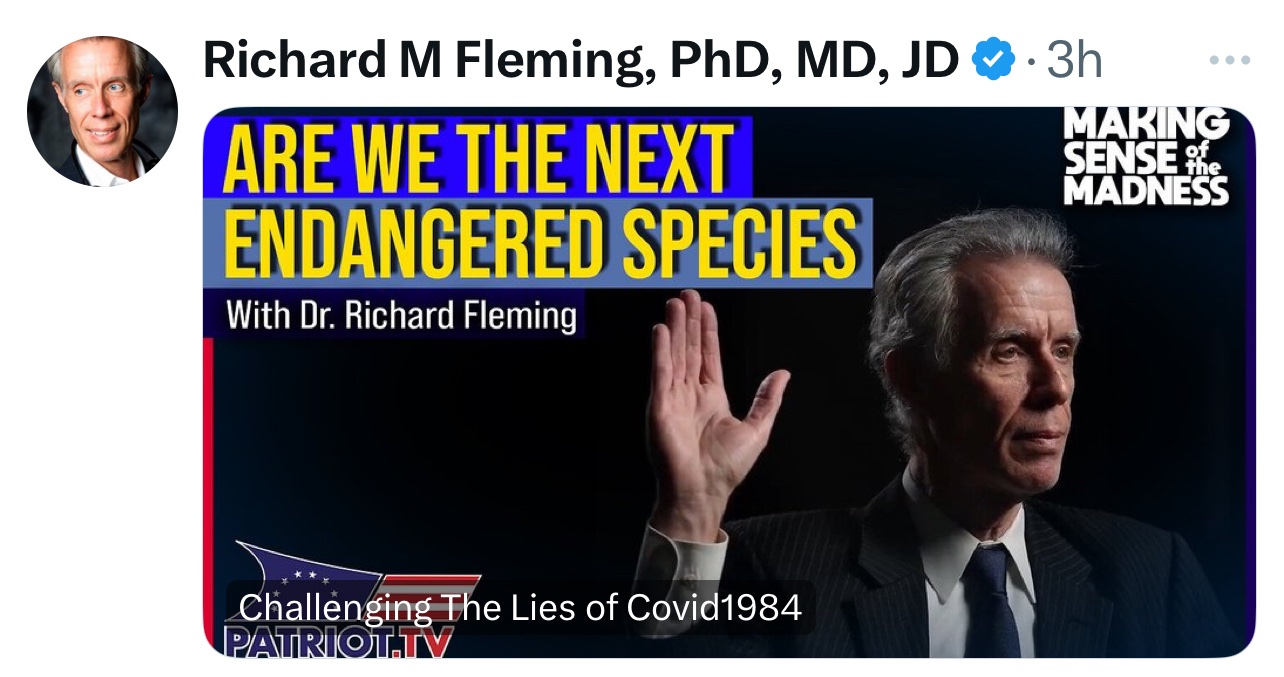 Cheshire is not a scientist. But neither is his nemesis Richard Fleming, also known as “Dr who?”. There is no insane conspiracy theory that covidiot and convicted felon hasn’t embraced, and he now wrote a second unhinged book. Which Cheshire read and now wrote a brief review about.