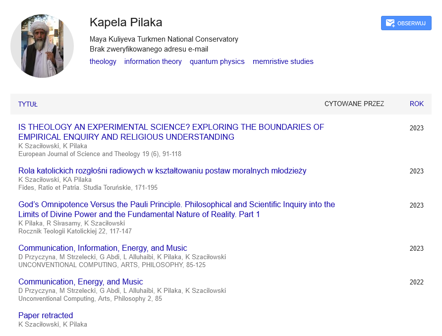 Prof. On Friday, Szaciłowski confirmed that he was behind the publications, explaining that his actions were intended to show the imperfections of the Polish evaluation system. He also admitted that the co-author of some of his texts, the Turkmen scientist Kapela Pilaka, does not actually exist.”