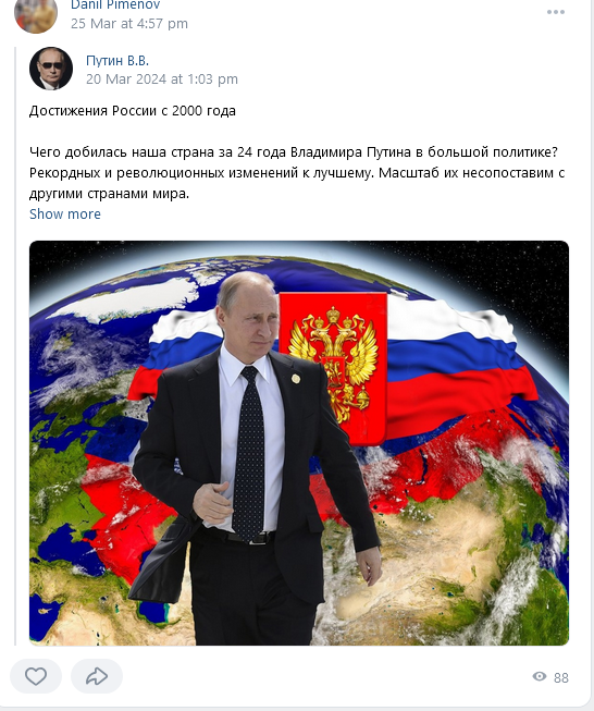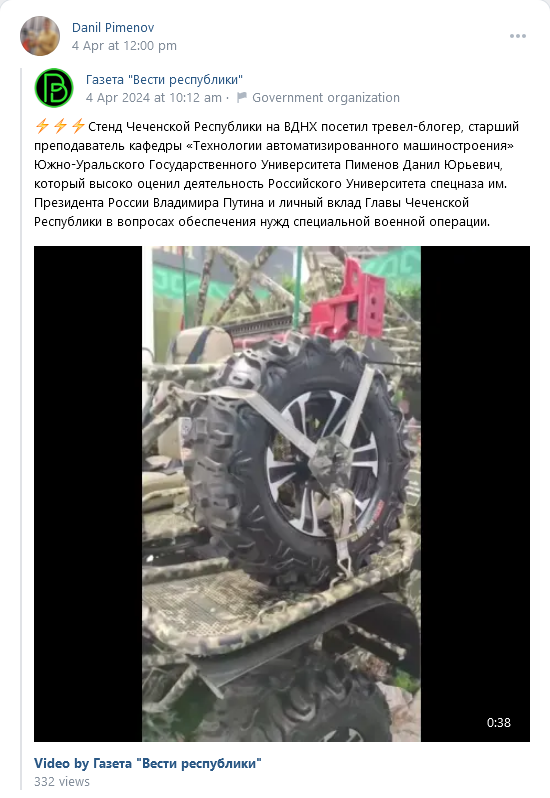 Importantly, Pimenov is not just a papermiller, but also a proud rascist Z-patriot. See his LinkedIn posts, and especially see his russian-language posts in VKontakte, where he celebrates putin, his chechen butcher ramzan kadyrov, russian empire and russian nuclear weapons, and of course Pimenov fully supports the “special military operation” against Ukraine: