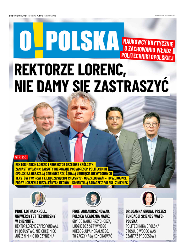 On 8 August 2024, Opolska replied to those threats with a cover story, under the headline: “Rector Lorenc, we will not be intimidated”.
