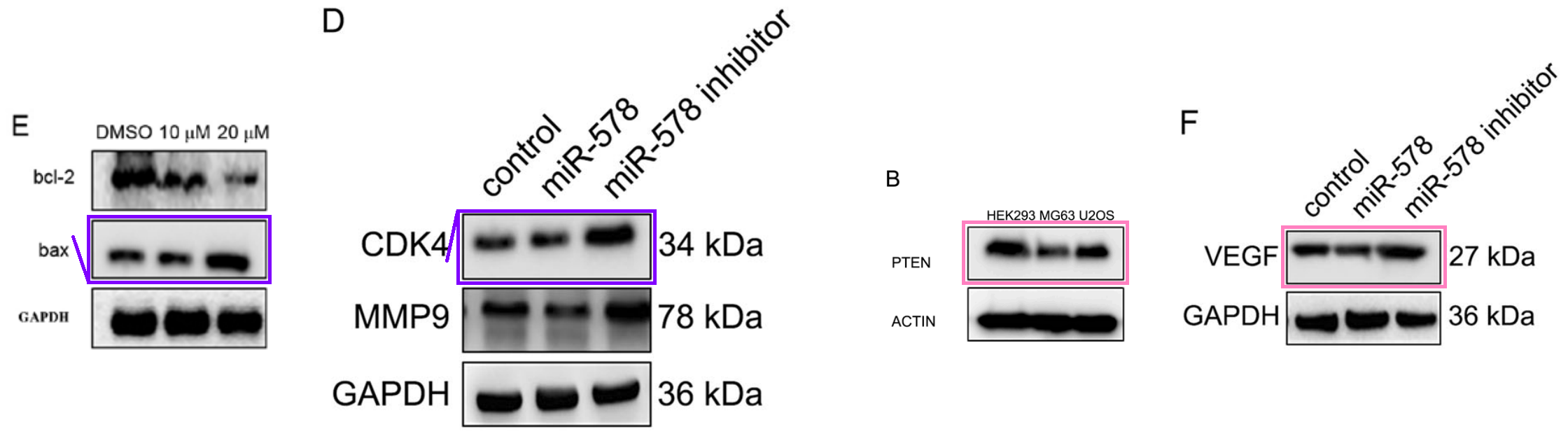 [right] Fig 1B from “Oxymatrine suppresses the growth and invasion of MG63 cells by up-regulating PTEN and promoting its nuclear translocation” (He et al 2017).; and Fig 2F from Ji et al.