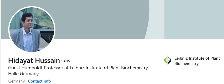 According to his LinkedIn profile, Dr Hussain is since 2018 Guest Professor at Leibniz Institute of Plant Biochemistry (IPB) in Halle, Germany.