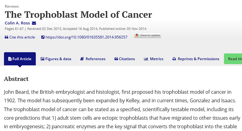 Ross since distinguished himself with his on-going promotion of the long-abandoned ‘trophoblast theory of cancer‘, and his defence of cancer-scammer Nicholas Gonzalez (in the form of papers extruded for journal-shaped dumpsters). As one expects from a Science Maverick and career contrarian.