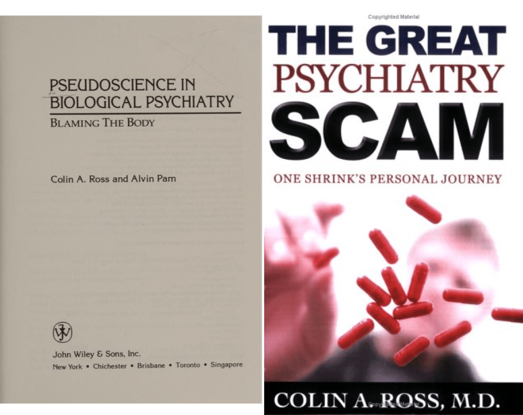 Ross is also known for writing A LOT about “the great psychiatry scam“. This is where psychiatrists pretend to treat their patients by handing out pills like Candyman without knowing or caring whether the meds work, when they should instead be relying on equally unscientific therapy-shaped conversation.