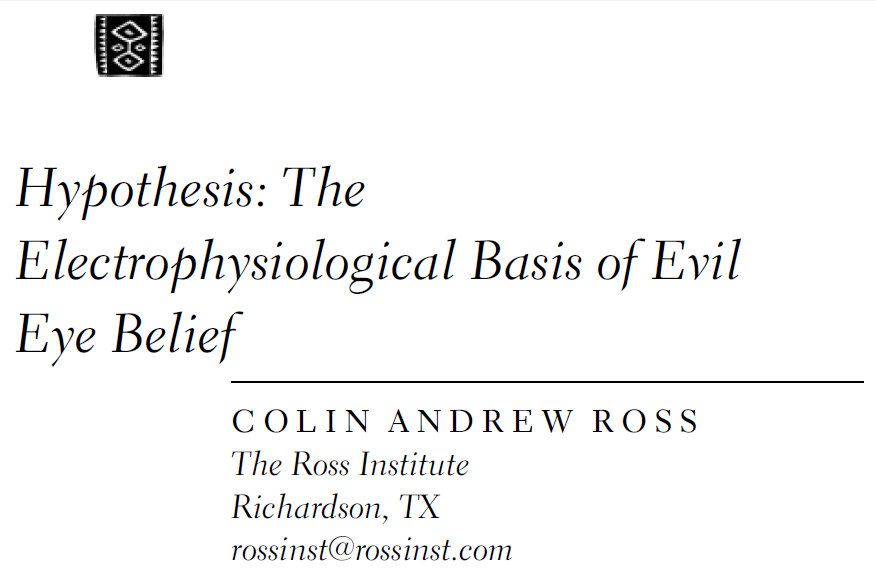 To be scrupulously fair, Ross is not an advocate of reverse-driven retinal emanations. When he proposes that the ‘Evil Eye’ is a real phenomenon, and that individuals with malign intentions can influence events and the health of others at a distance by the power of their gaze alone, neither lasers nor visible light are involved. His eye-beams are the low-frequency gestalts of collective neuronal activity, operating in broadcast mode and channelled to shine out forward by the anatomy of the eye-sockets.