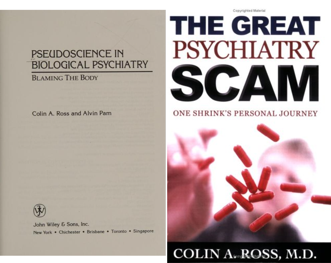Ross is also known for writing A LOT about “the great psychiatry scam“. This is where psychiatrists pretend to treat their patients by handing out pills like Candyman without knowing or caring whether the meds work, when they should instead be relying on equally unscientific therapy-shaped conversation.