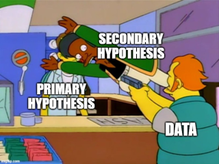 If all else fails, there is always p-hacking. This allows you to subdivide your subjects by some previously-unconsidered variable like Sex and introduce a secondary ‘interaction’ hypothesis to supplement / preserve your Just-So story. Then the absence of an overall effect proves the existence of two separate but opposite effects for men and women.