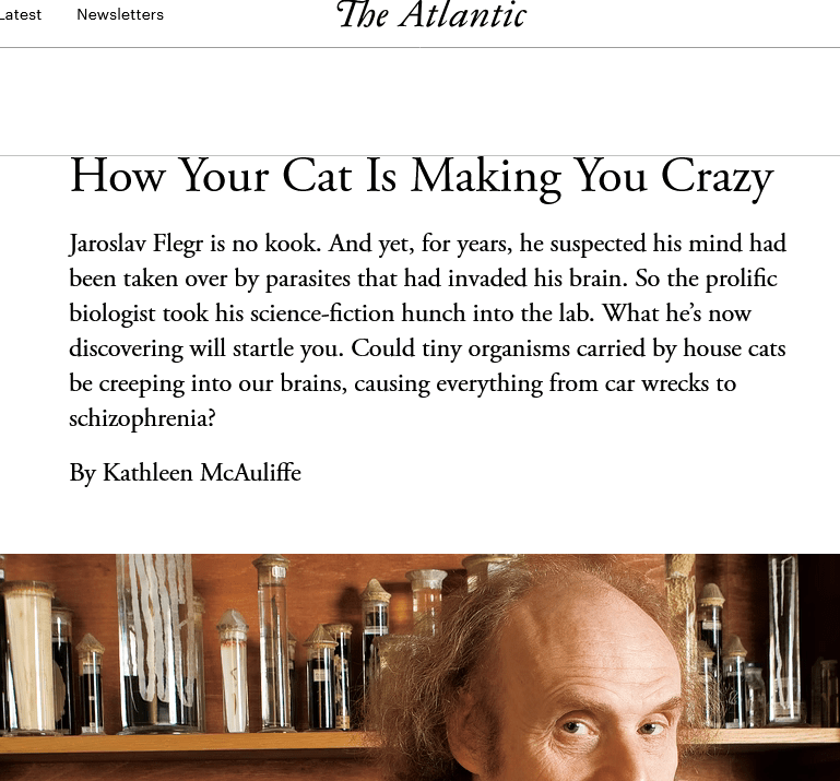 What drives certain people to irrational and antisocial behaviour patterns like cowardly attacking science and scientists from the cover of false identities like “Smut Clyde” or “David Bimler”? Decades of peer-reviewed research point towards a mind-altering infection with the brain parasite Toxoplasma gondii due to cat exposure.