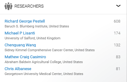 Lisanti is Pestell’s most common coauthor, they used to be inseparable. At around 2016/2017, the stream of joint publications fizzled out, incidentally this is also when Pestell decided to leave everything at Johns Hopkins and Kimmel Center for a tiny lab in some private “center”, and when Lisanti ended his endowed professorship at the University of Manchester and moved to the neighbouring yet much less significant University of Salford as “part-time” professor.