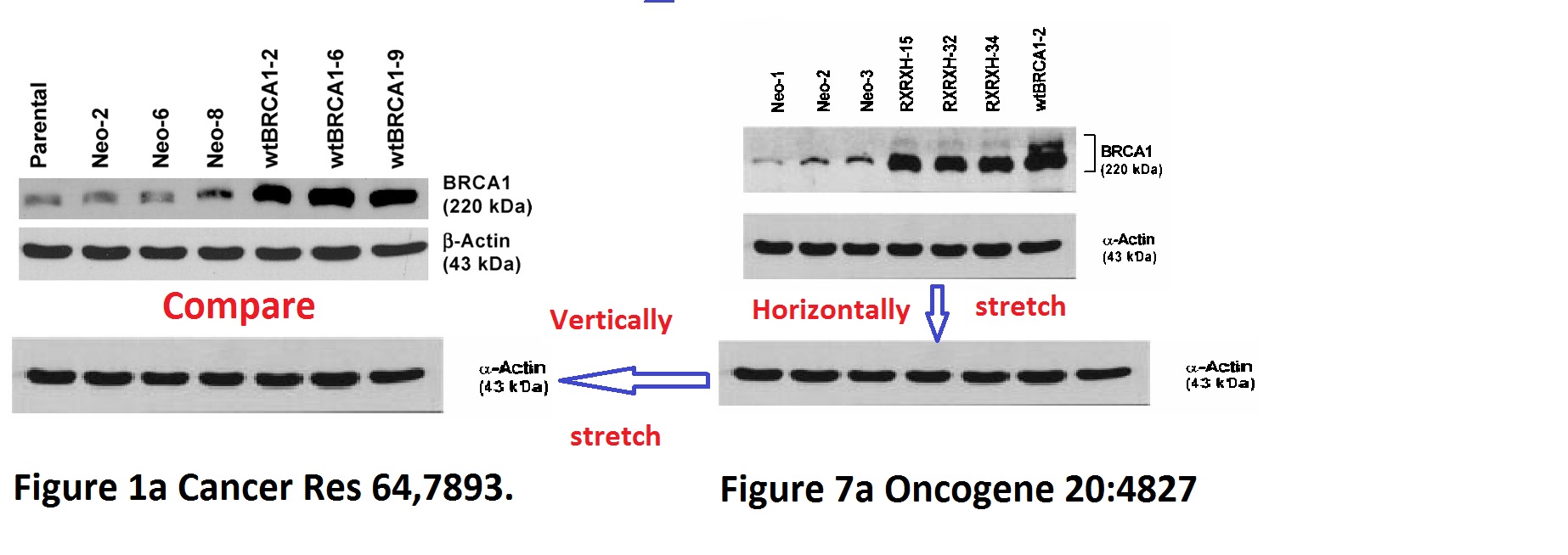 • Gel slices labelled BRCA1 in Figures 2a and 2b seem to be identical.