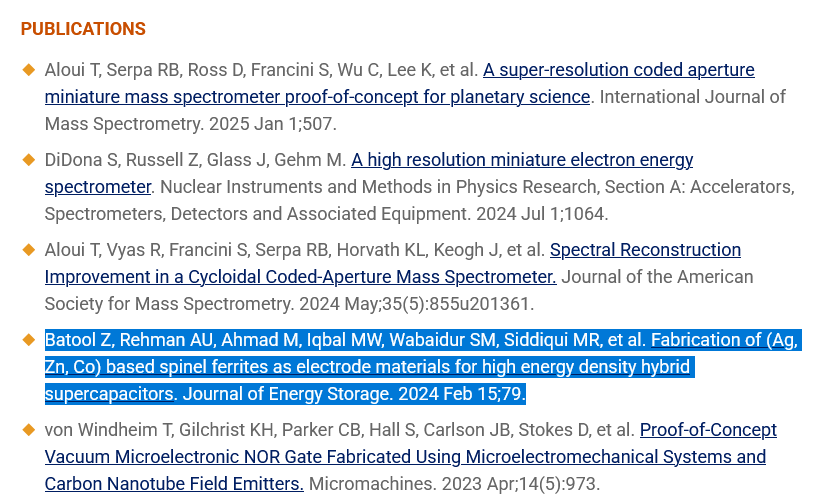 - Lubna Yaqoob et al., Development of an Efficient Non-Noble Metal Based Anode Electrocatalyst to Promote Methanol Oxidation Activity in DMFC, ChemistrySelect 2020, 5, 6023 – 6034, DOI: 10.1002/slct.202000705