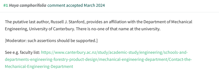 Elsewhere, another fake whitey created for no other purpose but to please racist editors, ceased to exist. The suspicions that “Russell J. Stanford” of Department of Mechanical Engineering, University of Canterbury, was actually a papermill creation, were raised on PubPeer by Smut Clyde in May 2024: