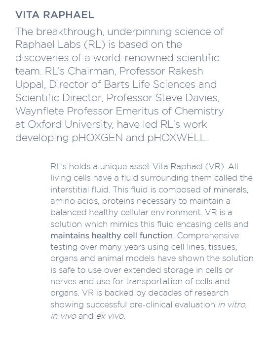 “RL’s holds a unique asset Vita Raphael (VR).” Archived Raphael Labs website
