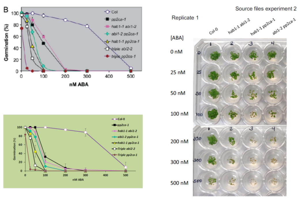 Given that the pp2ca-1 image affects germination data of figure 4B for the pp2ca mutant, the authors repeated this set of experiments.”