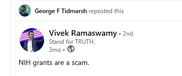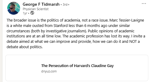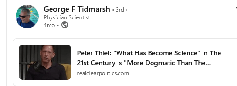 But who is this George Tidmarsh? He is a businessman and biotech investor with net worth of almost half a billion dollars, otherwise known as adjunct professor of pediatrics at Stanford School of Medicine. Tidmarsh also has certain views on the pandemic –Joe Bak-Coleman provided a helpful a Bluesky post in January 2025. Together with Berna Devezer, Bak-Coleman previously debunked a research integrity study by another hero of research ethics, Brian Nosek. Read here, paranormal activities included: