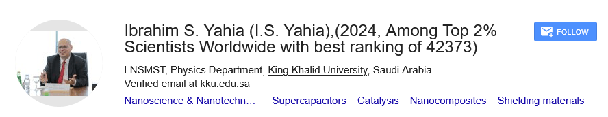 A Springer Nature journal retracted 3 papers by an Egyptian fraudsters, all reusing the same spectrum. Those were originally flagged by Mu Yang. the key author is Ibrahim S Yahia, professor at Ain Shams University in Egypt and King Khalid University in Saudi Arabia. Yahia owns a busienss called Egyptian Carbon Materials Company and informs us that he is “Among Top 2% Scientists Worldwide with best ranking of 42373“