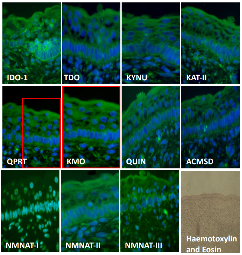 “Figure 5B: […] these should be cells stained with different antibodies. After adjusting for some difference in stretch, I don’t think it is credible that KATII and QPRT are actually different cells.”