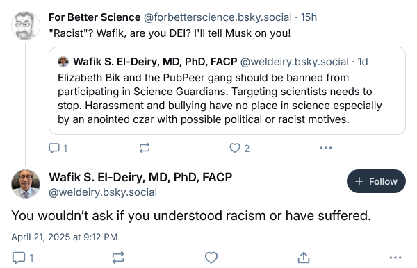 - An anointed czar with racist motives – Elisabeth Bik vs Science Guardian Wafik El-Deiry