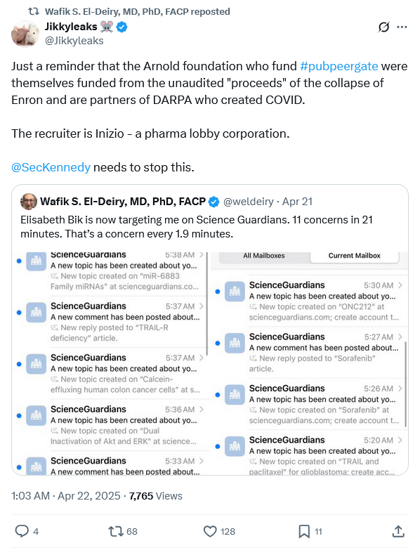 El-Deiry of course started to complain on social media about Bik’s defacing of his pristine platform. To none other but Trump’s Secretary of Disease and Human Suffering, Robert F Kennedy Jr: