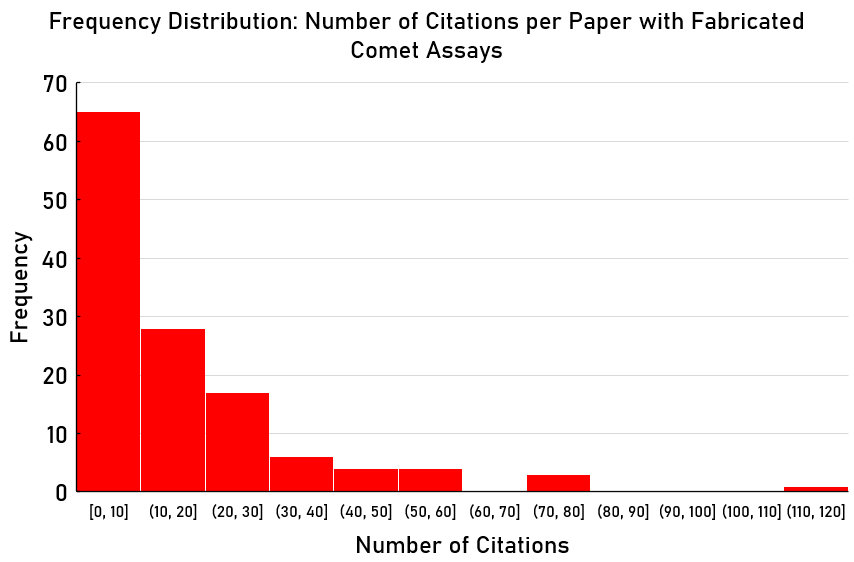 So far I have identified 128 papers with fabricated comet assay images. The papers are available in a spreadsheet here.