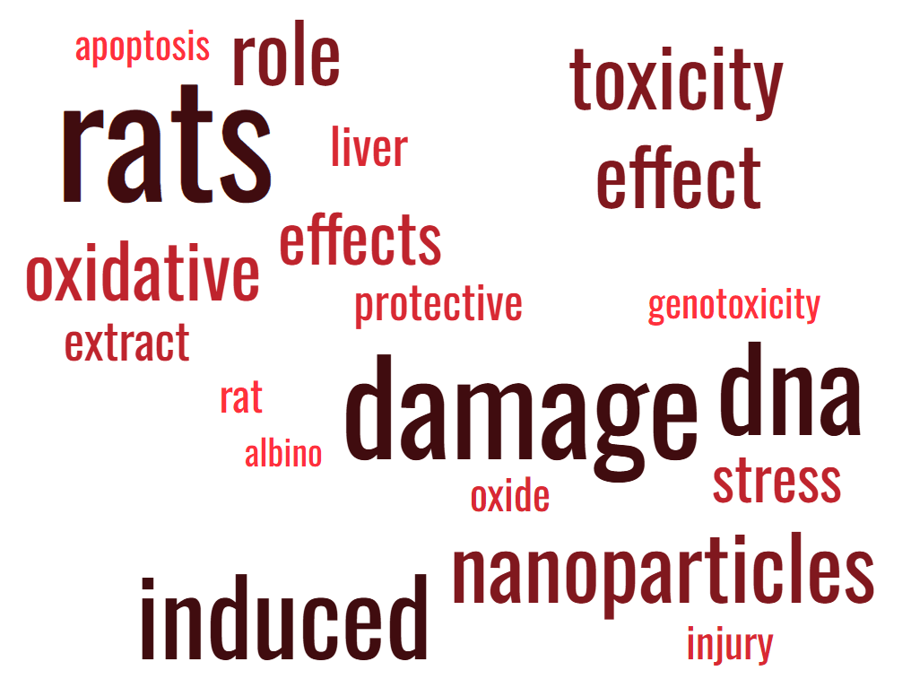 These papers are mostly themed around toxicity with a focus on metals, nanoparticles, and natural products. Many of the authors announce in vivo experiments to complement the comet assays. A word cloud based on the titles should give a hint of the major themes I have been following to identify these papers: