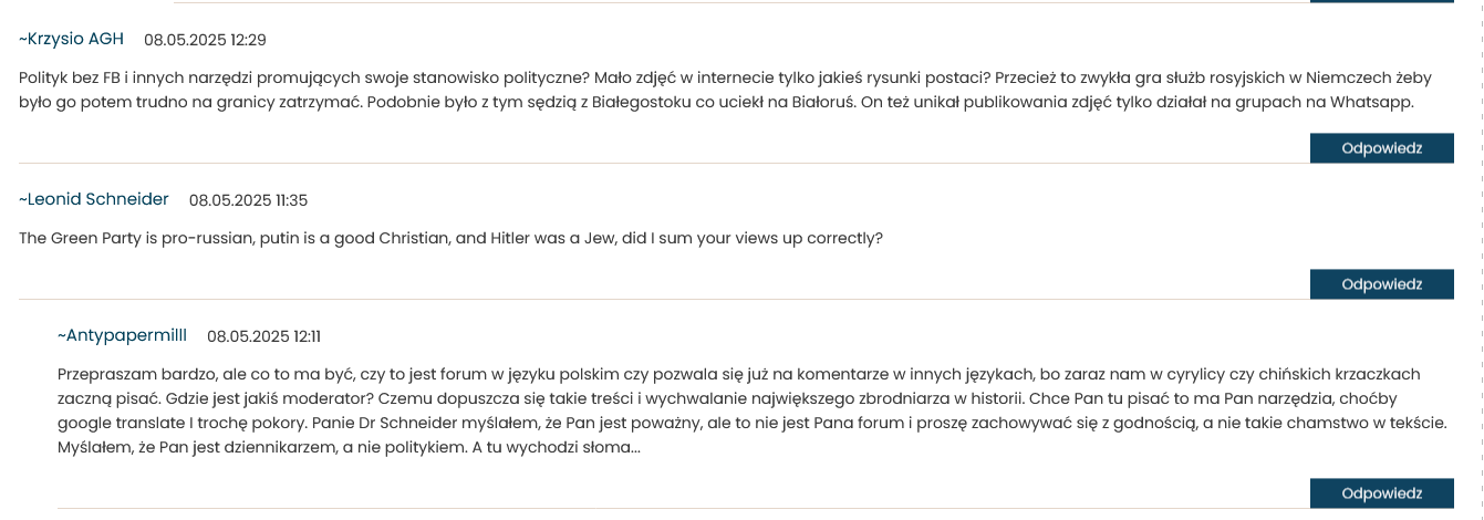 Please note that people around him graduated from Moscow universities. We are dealing with a Ukrainian of Jewish origin living in Germany who signs his name in Cyrillic and attacks scientists from Central Europe. Such information cannot be ignored.”