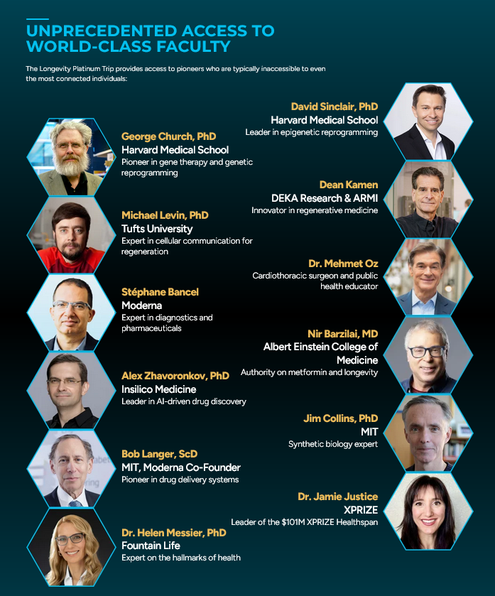Source“The people who will benefit most from the longevity revolution won’t be those who read about breakthroughs in the news. They’ll be those with insider access—who learn about advances directly from the scientists making them, who understand which approaches are truly promising, and who position themselves to benefit from these discoveries early.” Source