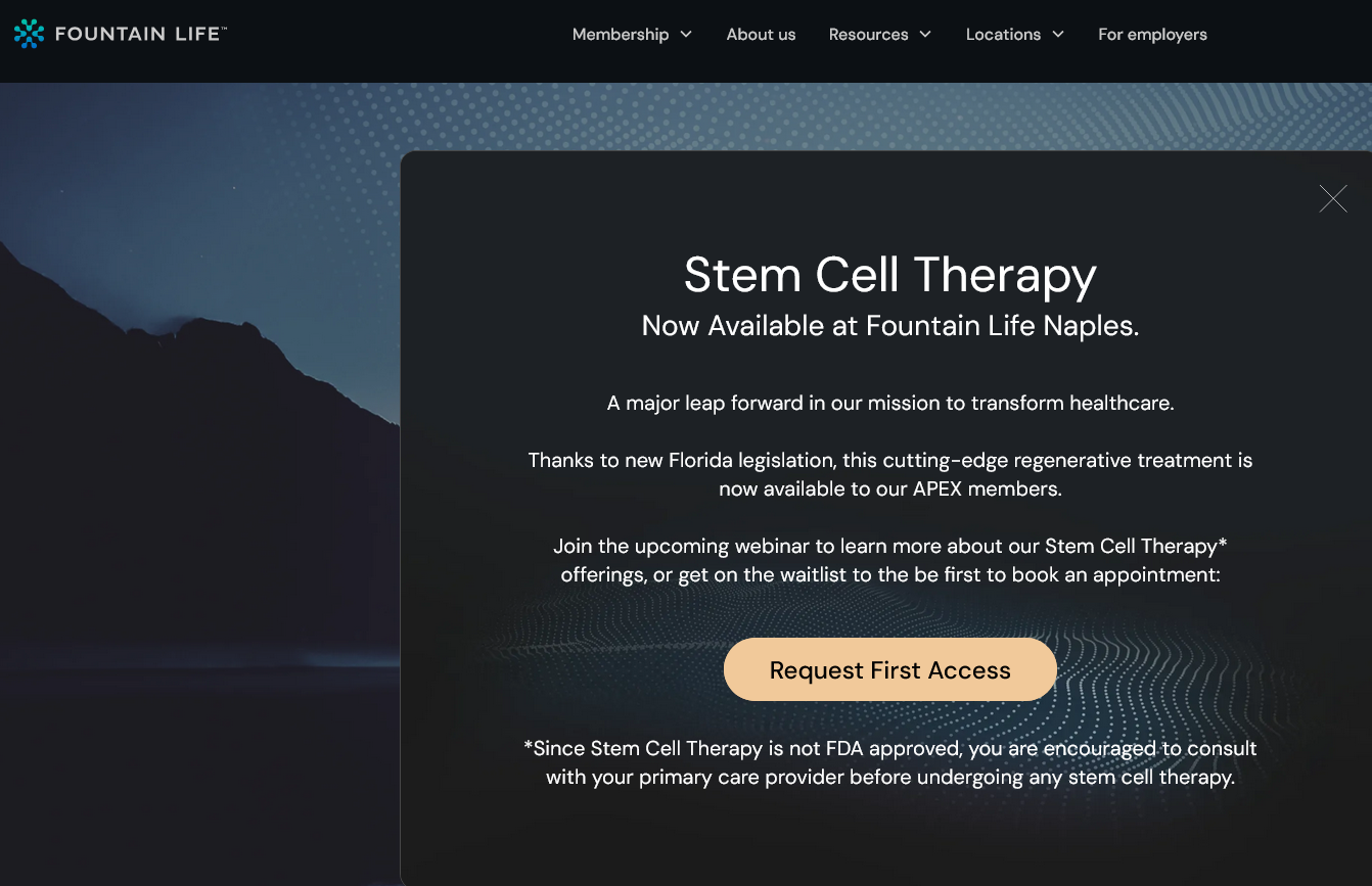 One of Diamandis’ anti-aging biotechs is Fountain Life, where you are immediately offered quack stem cell therapies in Florida (because of Ron DeSantis’ new rules):