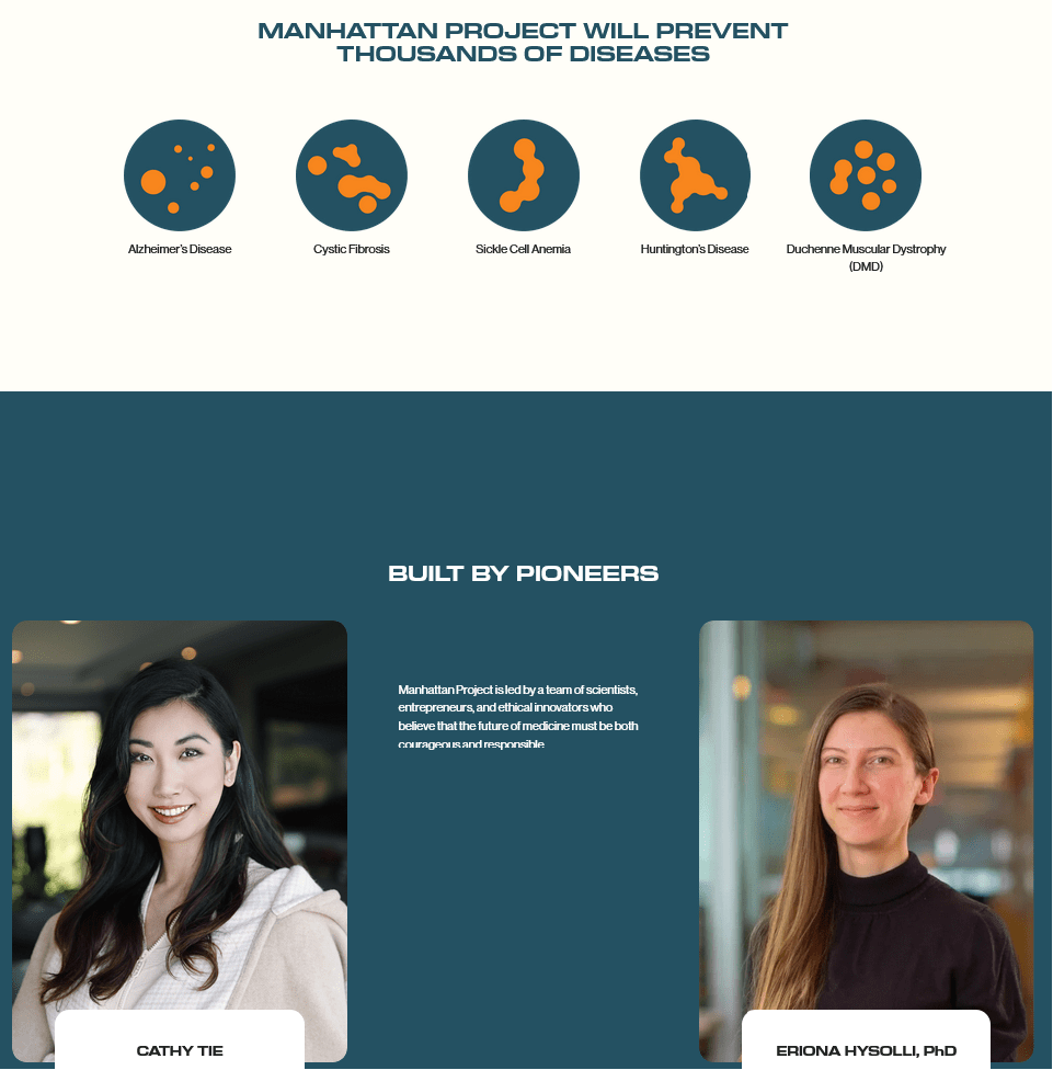 This is why a certain Eriona Hysolli. Church’s MIT lab member and Colossal’s Head of Biological Sciences (celebrated as such in 2023 TIME100 Next!). founded the Manhattan Project: a business designed to deliver gene-edited babies to rich customers:
