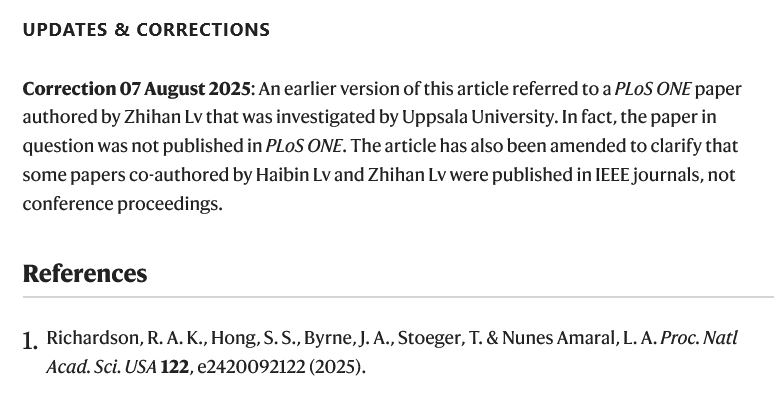 In the context of the above discussed Richardson et al PNAS 2025 study, Nature revealed on 7 August 2025 their own “Exclusive“: