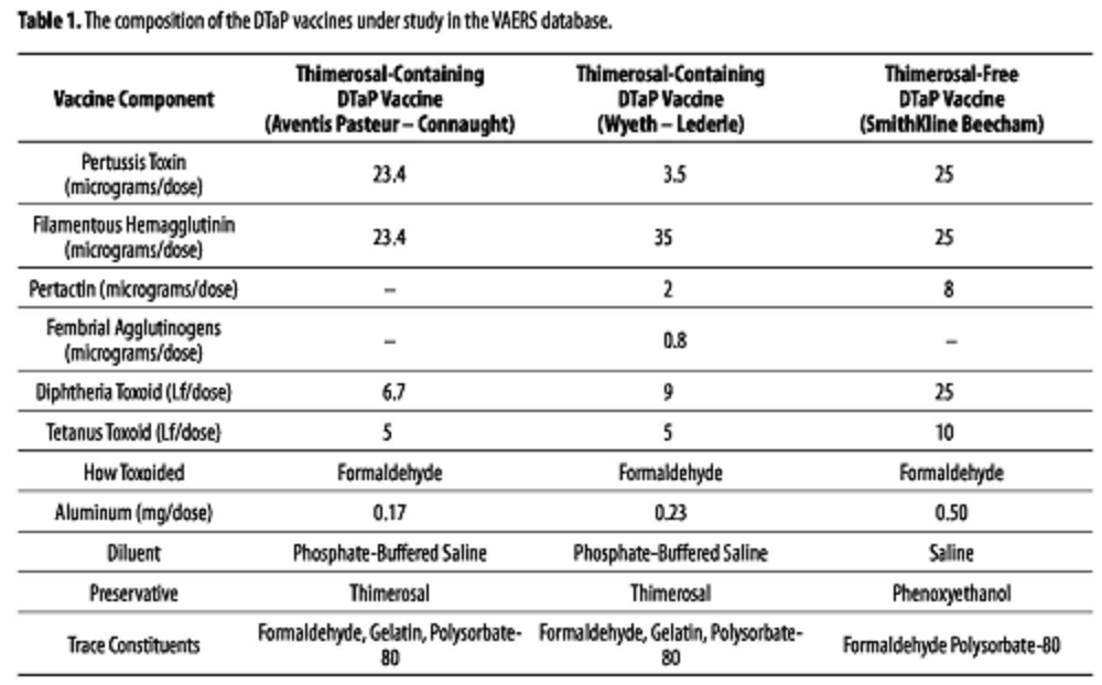 “In further considering the results of the present study, it must be noted that none of the children examined in this study of the VAERS database truly represent a thimerosal-free population. Within the reports, it was observed that other vaccines containing thimerosal such as hepatitis B vaccine, Hib vaccine, or influenza vaccine were concurrently administered to those receiving thimerosal-containing or thimerosal-free DTaP vaccines. The difference in the total amounts of mercury received from thimerosal-containing vaccines in the children examined in the VAERS database stems from the fact that some children received additional doses of mercury from thimerosal-containing DTaP vaccine in comparison to those children receiving thimerosal-free DTaP vaccine. As a result, the increased risks observed for neurodevelopmental disorders, probably, represent a considerable underestimate of the true risk of additional doses of thimerosal from vaccines.
