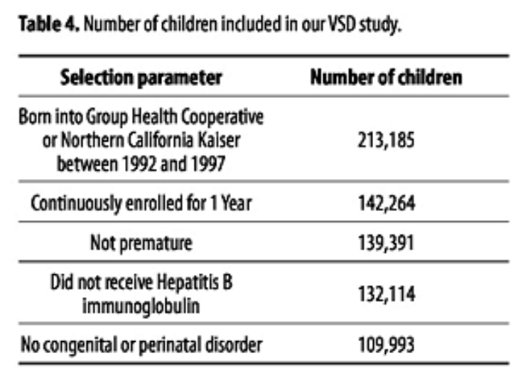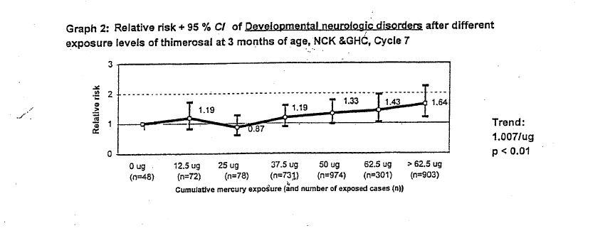 “In further considering the results of the present study, if must be noted that none of the children we examined in this study from the VAERS database truly represent a background population that received no thimerosal. It was observed among the reports examined in the VAERS database that other vaccines containing thimerosal, such as hepatitis B vaccine, Haemophilus influenza type B (Hib) vaccine, or influenza vaccine, were concurrently administered in the birth cohorts examined. The central difference in the total amounts of mercury received from thimerosal-containing vaccines in the children examined in the VAERS database stems from the fact that some children received additional doses of mercury from thimerosal-containing DTaP vaccine in comparison to those children receiving thimerosal-free DTaP vaccine. As a result, the increased risks observed for neurodevelopmental disorders, probably represent a considerable underestimation of the true risk of additional doses of mercury from thimerosal containing vaccines.