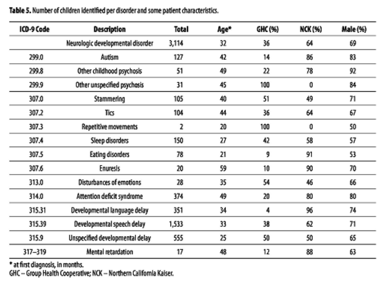 “Table 5 shows the number of cases encountered for each disorder, the mean age at first diagnosis, the distribution over the two HMOs, and the percentage males among cases.