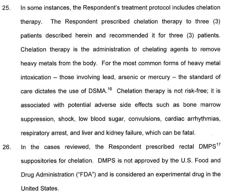 “A recent clinical study by Bradstreet et al. (2003) has evaluated the concentration of heavy metals in the urine among children with autistic spectrum disorders in comparison to a neurotypical control population based upon excretion following a 3-day treatment with meso 2,3-dimercaptosuccinic acid (DMSA). The authors observed that there was approximately six-times significantly greater urinary mercury concentrations among vaccinated cases matched to vaccinated neurotypical controls, whereas children with autistic spectrum disorders had similar urinary cadmium and lead concentrations in comparison to controls. Similar urinary mercury concentrations were observed among matched vaccinated and unvaccinated neurotypical children following DMSA treatment.