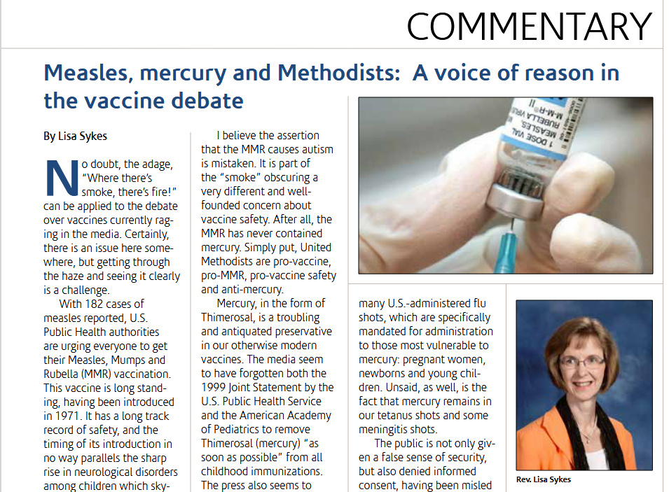 Rev. Lisa Sykes is a now-retired Methodist minister, fervent admirer of Geiers (she wrote the March 2025 obituary for Mark Geier) , co-founder with the Geiers of the Coalition for Mercury-Free Drugs (CoMED), unsuccessful plaintiff in Sykes v. Glaxo SmithKline (aka Sykes v. Bayer) (a federal lawsuit in which this author was unsuccessfully subpoenaed), co-author with David Geier of the autohagiography Sacred Spark, and a true believer in the idea that her autistic son was poisoned by mercury in his vaccines, in the RhoGAM shot she received while pregnant, and in environmental emissions by Dominion Electric.