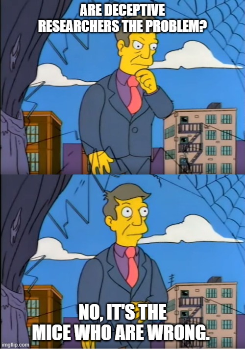 Narrator: Oops. I guess the kind of people who will lie or alter their data to mislead readers also don’t care about the welfare of the animals they used, or about image integrity!