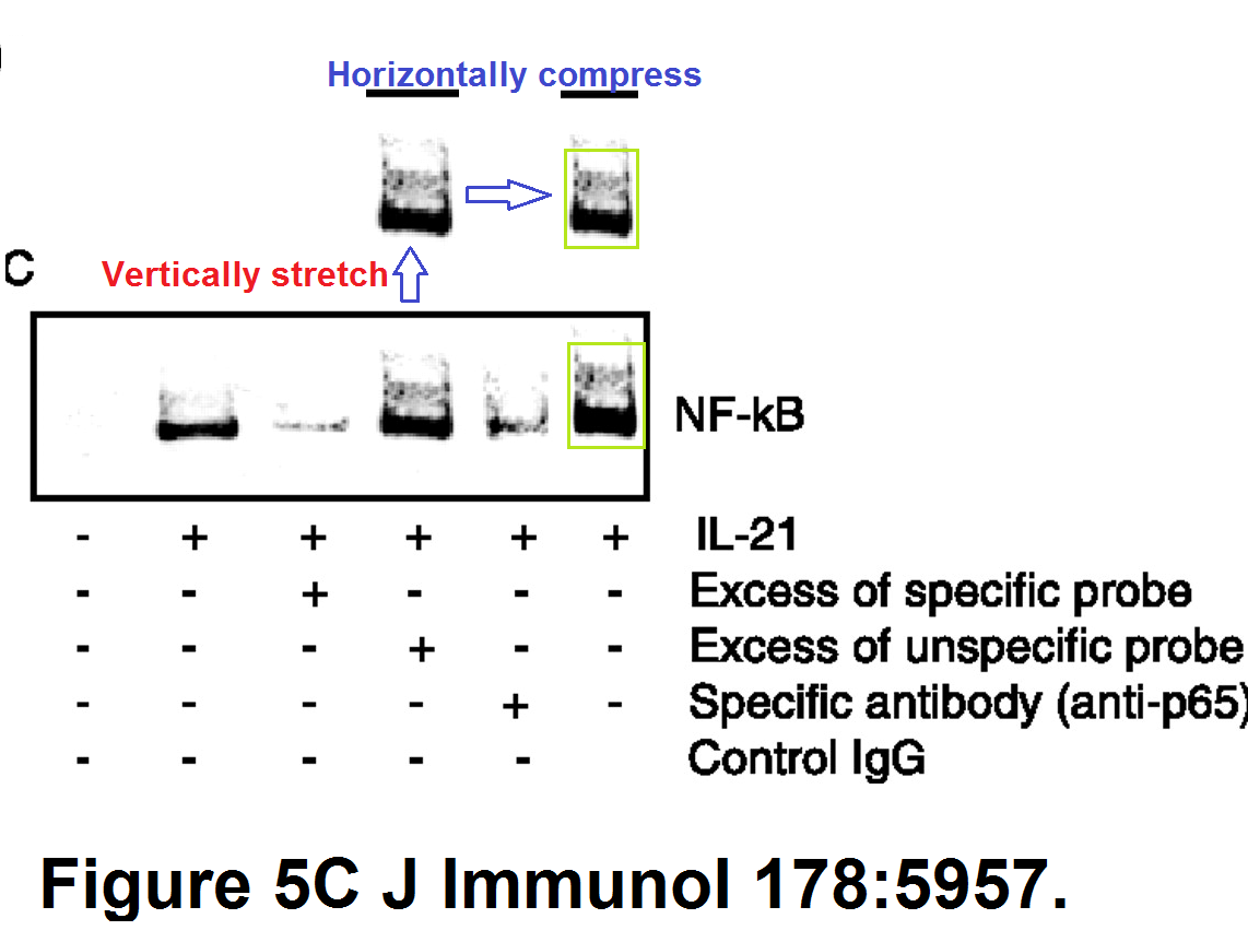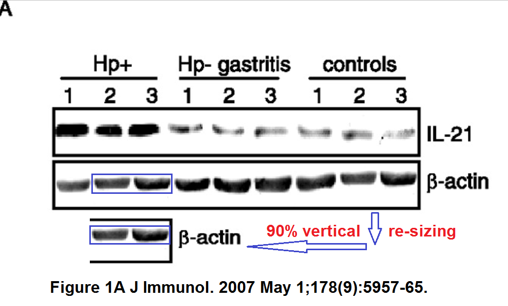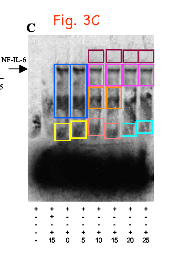 The Michigan scholar, whose replies sound very much like those of her mentor in Rome, posted the same stupid nonsense (“a more thorough examination (at a higher magnification) […] reveals that […] these bands are distinct“) about clearly duplicated gel bands in this paper: